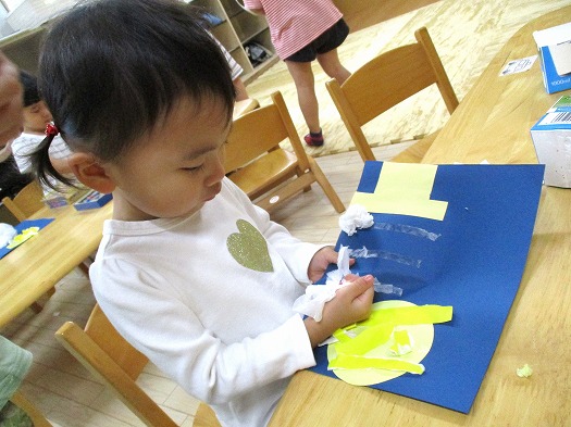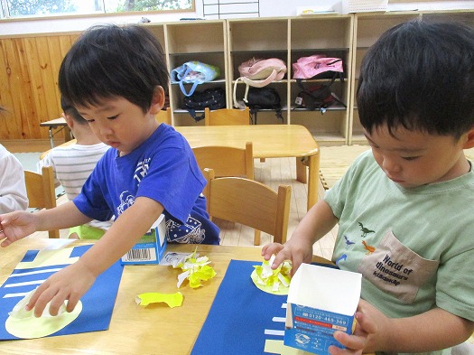 2025年10月03日 10月3日(金)すくすくクラブ ブログ 2か月ぶりのすくすくクラブ 今日は雨だったこともあり 部屋でのんびり過ごしました☔ 自分のマークはなんだったかな~? おやつの時は何を準備するんだったかな~? 少しづつ思い出しながら😊 ちぎって丸めて かわいいお月見の製作をしました。 みんなの作ったお月さまとお空のお月さま ぜひ見比べてみてね🌕 一覧へ戻る