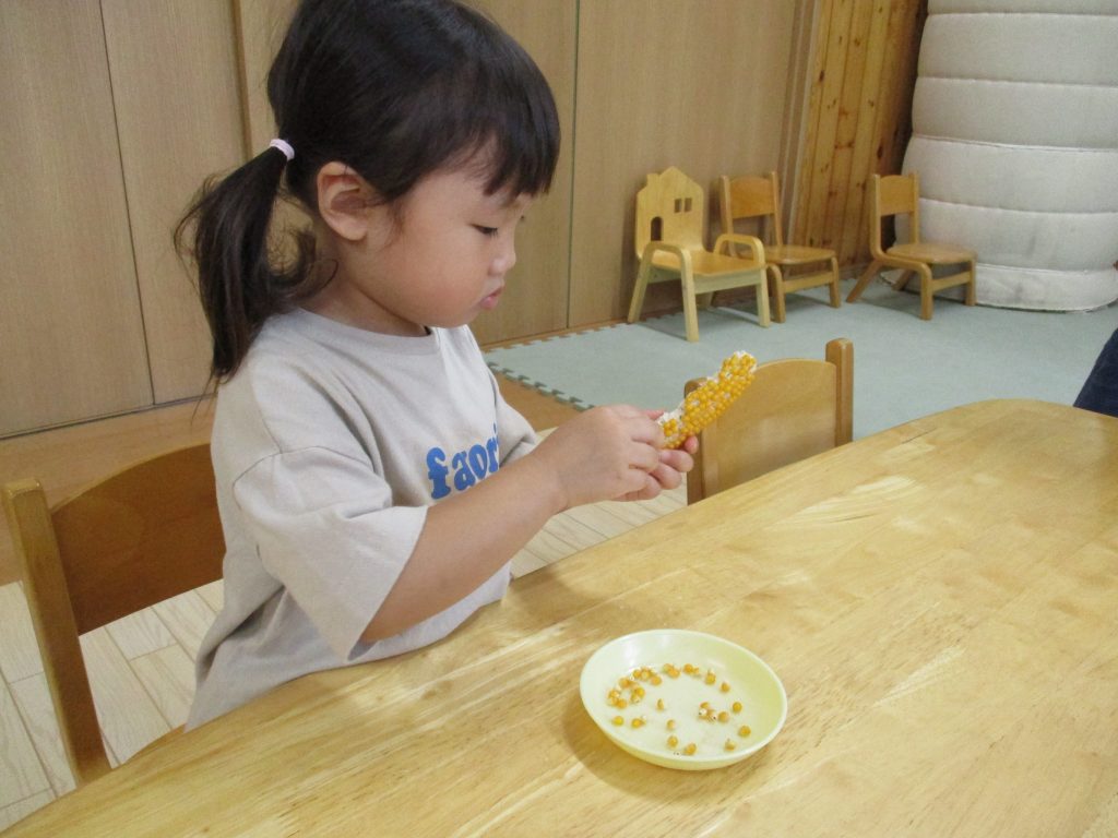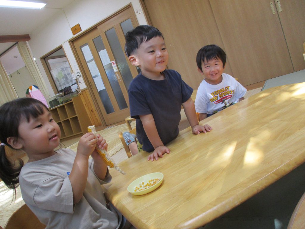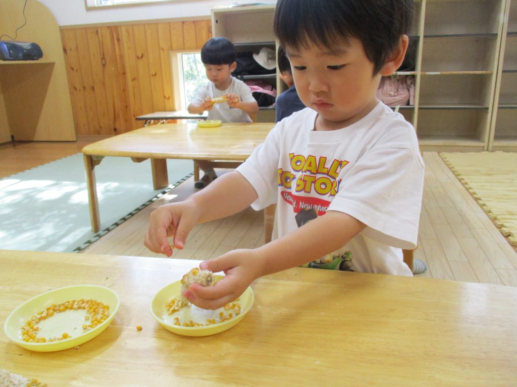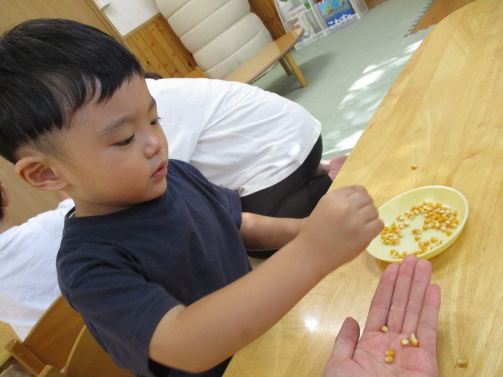 2025年10月24日 10月17日(金)すくすくクラブ ブログ ポップコーンクッキングをしました。 とうもろこしのたねがポップコーンに変身するよ~と伝えると一生懸命に集中してたっくさんむきむきしました♡ ポンポン弾けだすとみんな目を輝かせて見ていました。 ふうせんでも遊んだよ~!ぽーんぽーんアイクリップは、はさんだりくっつけたりいろんな物が作れて楽しいよ😊次回は11月7日になります。また元気に会えるのを待っています。 一覧へ戻る