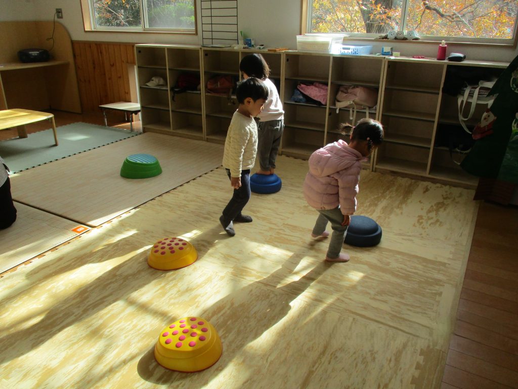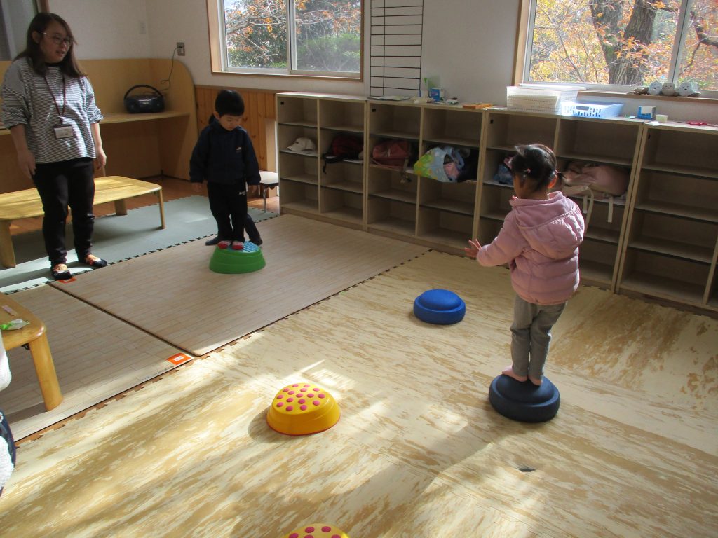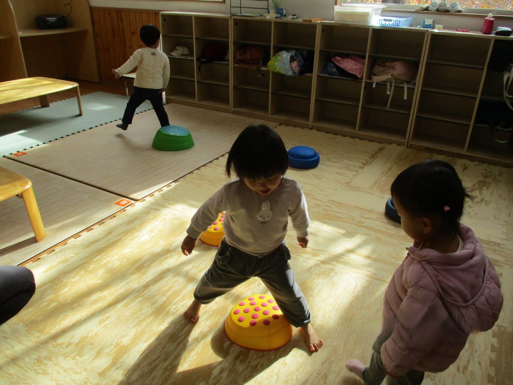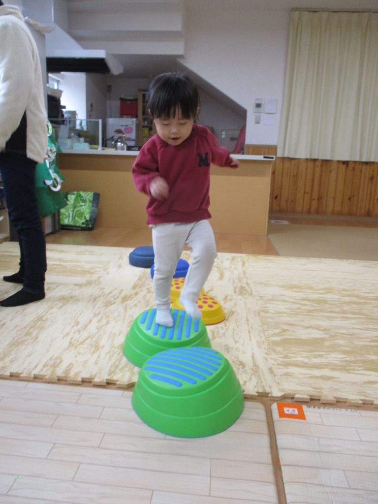 上手にジャンプしたり、立ってみたりいつもと違うあそびに楽しそうでした😊
